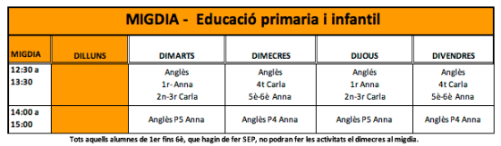 - Hem penjat l’horari d’anglès definitiu