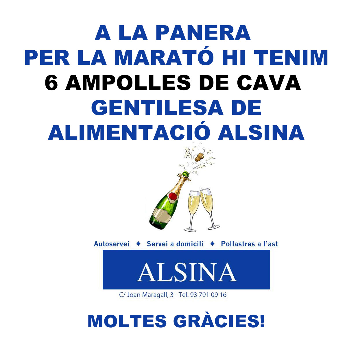 ALSINA Published: 09/12/2019Full size: 1200 × 1200Attached: Compra els tiquets per guanyar la panera de La Marató! « »