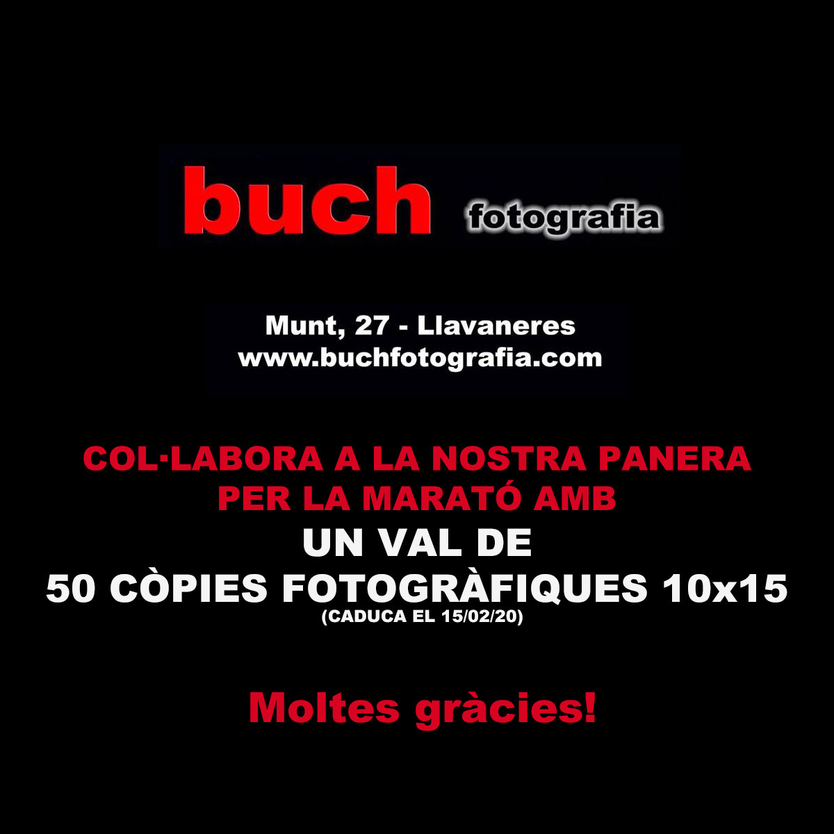 BUCH Published: 09/12/2019Full size: 1200 × 1200Attached: Compra els tiquets per guanyar la panera de La Marató! « »