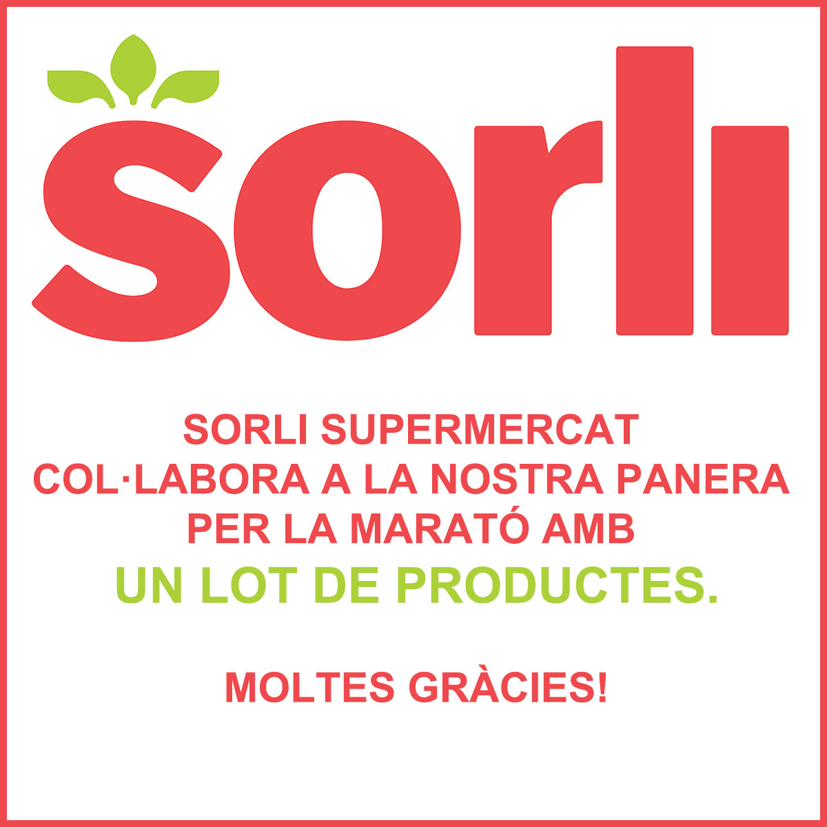 SORLI SUPERMERCAT Published: 09/12/2019Full size: 1200 × 1200Attached: Compra els tiquets per guanyar la panera de La Marató! «